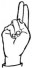 На ћирилици написано МИЊА БИБЕР састоји се из 9 слова [?]. Исписано ћириличном једноручном азбуком за глувонеме: